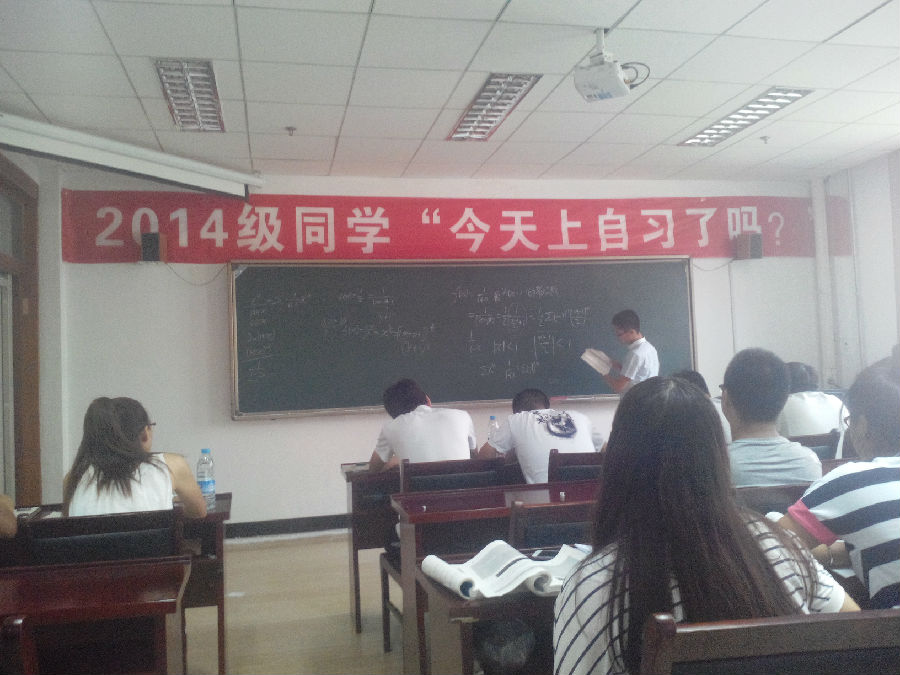 步入教室,“2014级同学,今天你上自习了么?”醒目的标语映入眼帘。你问我答、奋笔疾书、认真思考、互帮互助的一幕幕场景尽在眼底。这正是Beat365为加强2014级新生班级学风建设,提升后进生学习成绩的一项新举措——开设数分、高代学习提高班。学院用爱温暖学生,通过队伍搭建、制度设计、文化熏陶,努力营造良好的班风学风。利用短学期空隙,组织三个专业学习成绩差的学生上自习,学习成绩好的同学作为“小老师”授课。