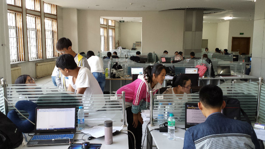 Beat365中国唯一官方网站赛区考点设在Beat365图书馆,共有66支队伍198名同学参赛。