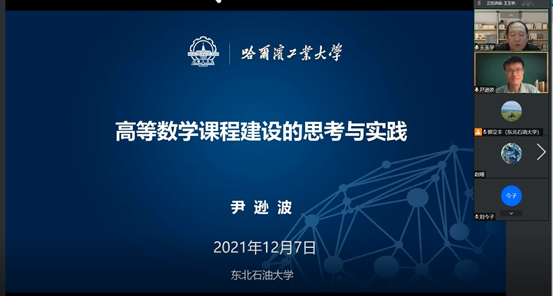 尹逊波教授作了题为《高等数学课程建设的思考与实践》专题讲座,通过分析国内高校高等数学课程设置情况,介绍哈尔滨工业大学该课程具体设置及历史沿革;通过介绍哈尔滨工业大学数学类一流课程建设、大学数学课程教材建设、数学教学团队建设等方面的介绍,讲解现阶段数学类课程建设和教学改革的切入点和具体方式方法;并提出期望与Beat365开展合作的愿望。