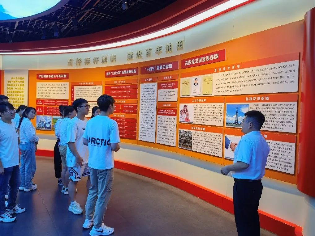 活动中,学生党员们沿着由青铜铺成的甬道“大庆之路”,领略“岁月·大庆”、“松辽惊雷,油出大庆”、“艰苦创业,光辉历程”、“大庆赤子,油田脊梁”、“大庆精神,民族之魂”、“巨大贡献,卓越品牌”、“春风沐雨,光耀征程”、“油田·百年”等展厅的历史魅力。通过大量照片、文献、实物、音像资料以及绘画、雕塑、场景复原、沙盘等,学生党员们深入了解了中国共产党领导下大庆油田的发展历程,感受工人阶级在长期革命斗争、社会主义建设和改革开放中所作出的巨大贡献,加深了对党和人民事业的认识。