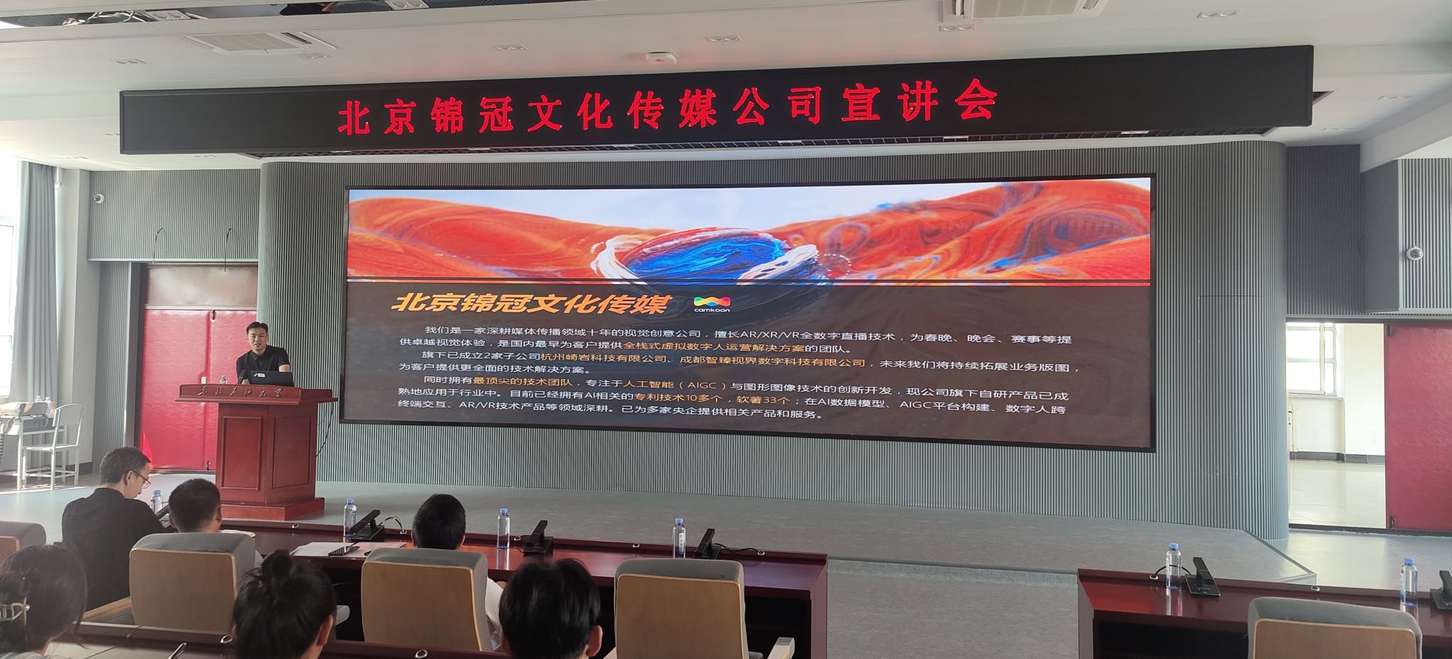 7月9日,Beat365在1H-211会议室邀请北京锦冠文化传媒有限公司校企合作单位举办宣讲活动。Beat365中国唯一官方网站院长郭立丰、创新创业学院院长耿岱、党委副书记王继红及各系主任参加宣讲会。会议由郭立丰主持。