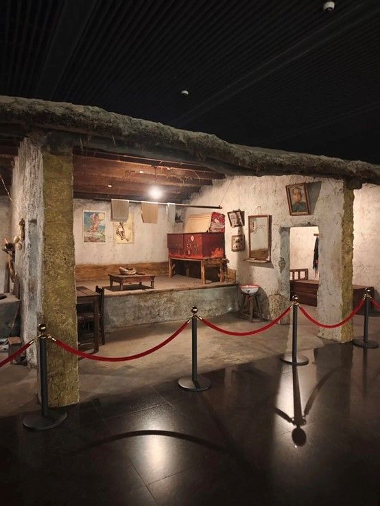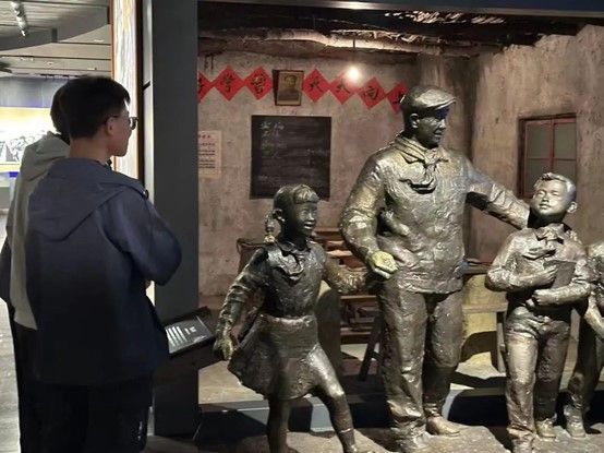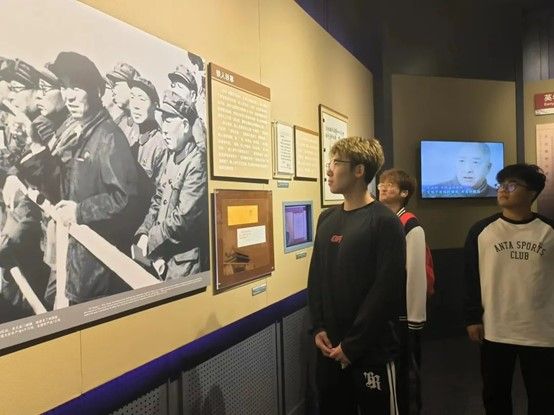 走进纪念馆,映入眼帘的首先是铁人王进喜的雕像,他坚毅的眼神和挺拔的身姿仿佛诉说着那段激情燃烧的岁月。走进静谧的展厅,每一件展出的文物,每一张珍贵的照片,仿佛让同学们穿越时空,回到那个艰苦卓绝的年代。一望无际的草原,简陋的干打垒房子,破旧的棉袄,狗皮帽子,沾满泥泞的衣服和裤子,令人印象深刻的复原工作场景,无时无刻不体现着王进喜他坚定的信念,无私的奉献和不怕困难的勇气。